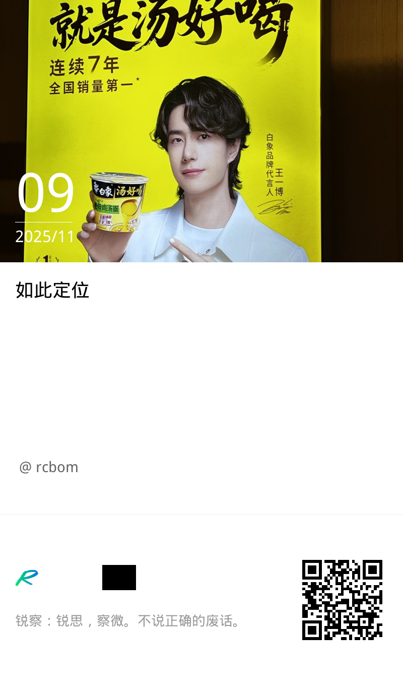 如此定位 rcbom 2025-11-09 2503 预计阅读需要1分钟 营销的点,要打到消费者的心里面。 本文由 rcbom 发布在 锐察 | rcbom.com,转载此文请保持文章完整性,并请附上文章来源(锐察 | rcbom.com)及本页链接。原文链接:https://www.rcbom.com/mkt/2115.html